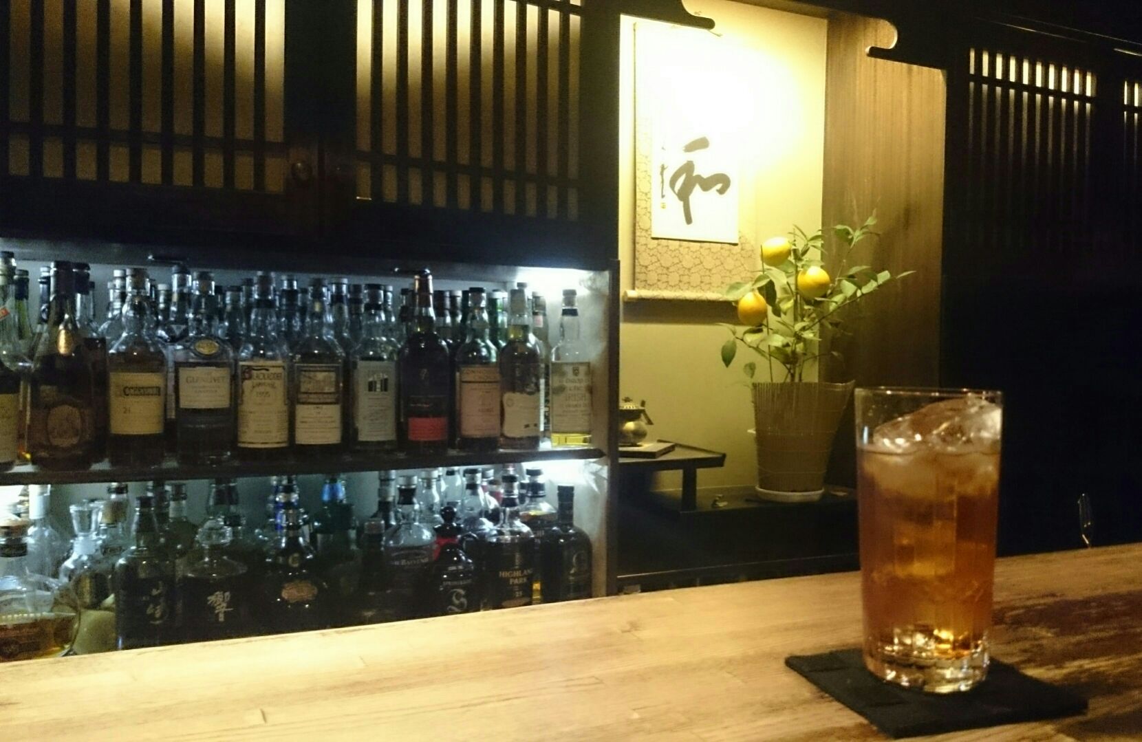 Bar「梟」では、絶品のカクテルにおいしいウィスキーがいただける。